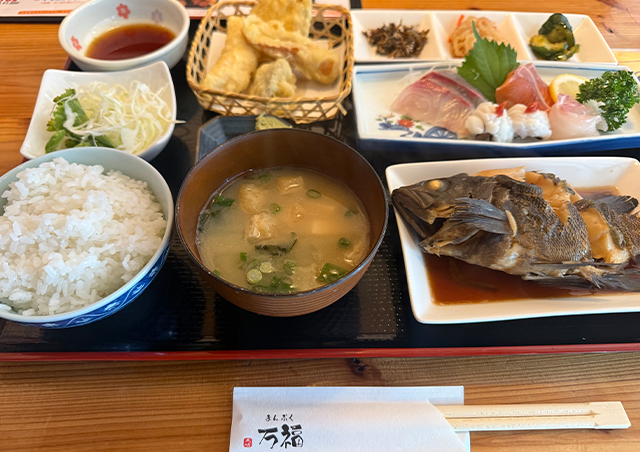 海老フライ定食1,100円、万福定食2,400円(三種プレート・汁物付)